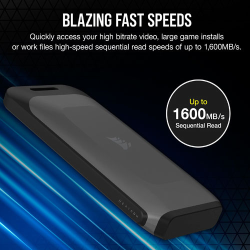 The CORSAIR EX100U Portable USB Type-C Storage Drive delivers blazing-fast storage to any PC, Mac, or console with a USB port, all in an incredibly small, portable profile.